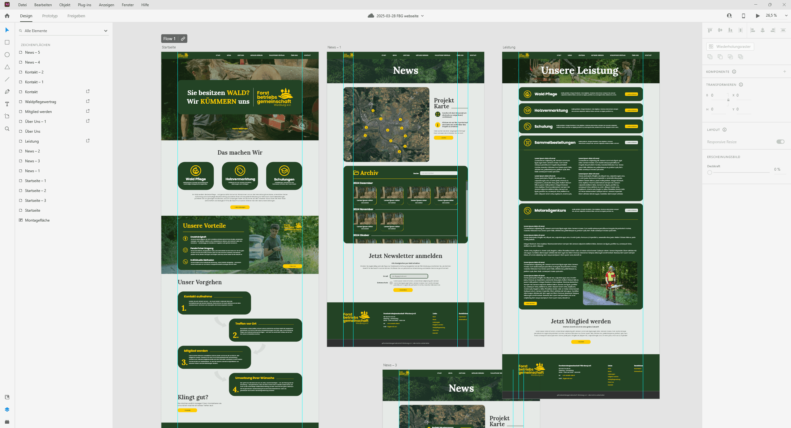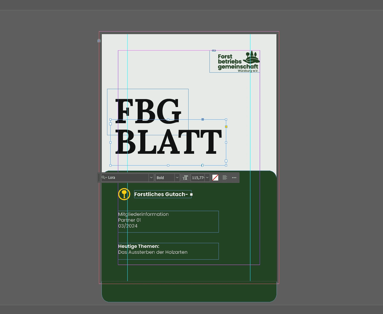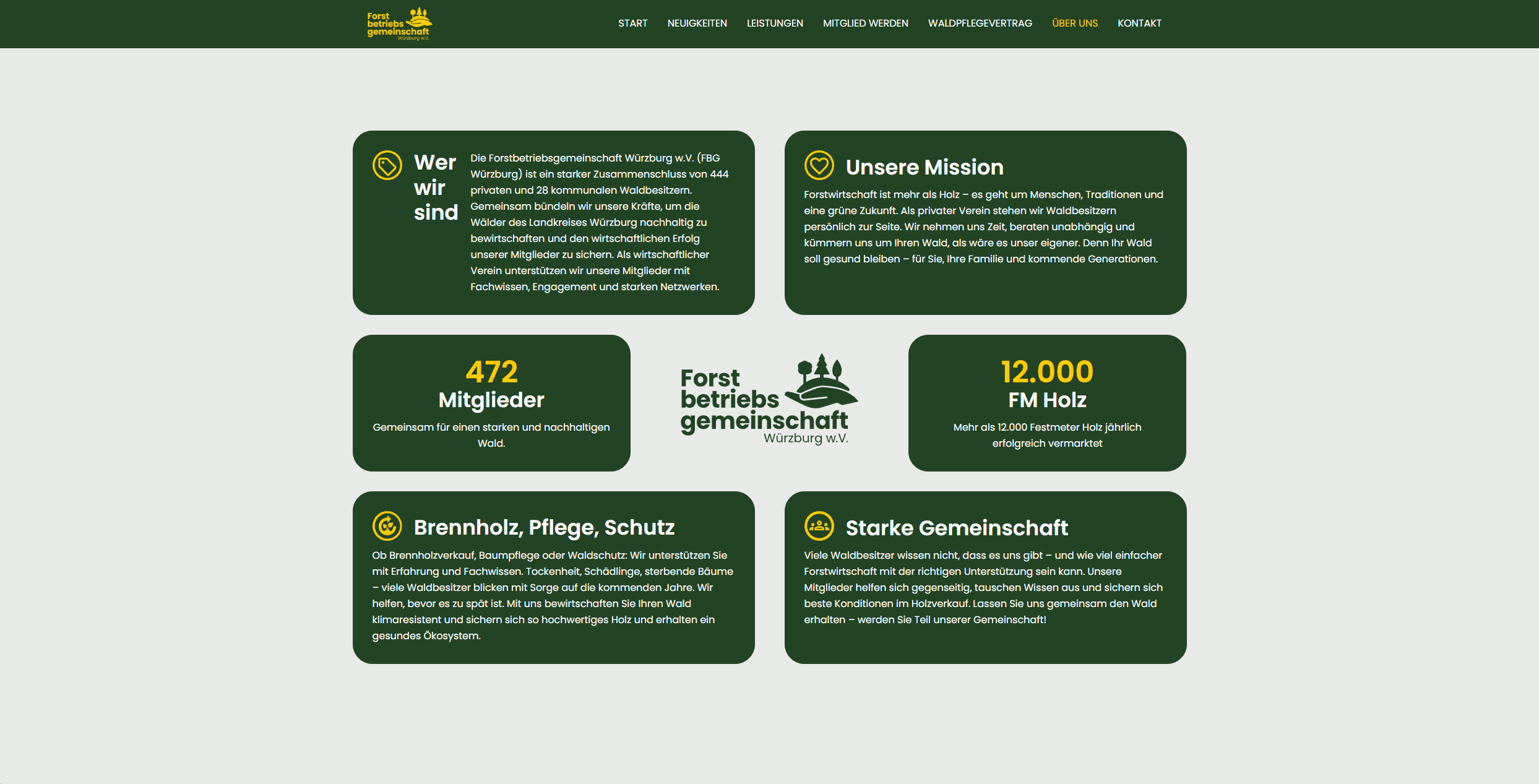 Die FBG zukunftstauglich machen. Das war das Ziel dieser Arbeit. Mit einer neue CI, Logo, Webkonzept und Mitarbeitershooting ist der Betrieb auf dem neusten Stand. So können Kursanmeldungen und Holzbestände sowie News direkt über die Seite verwaltet werden. Des weiteren wurden Vorlagen für das Monatliche FBG-Blatt (eine Infozeitung) gestaltet.